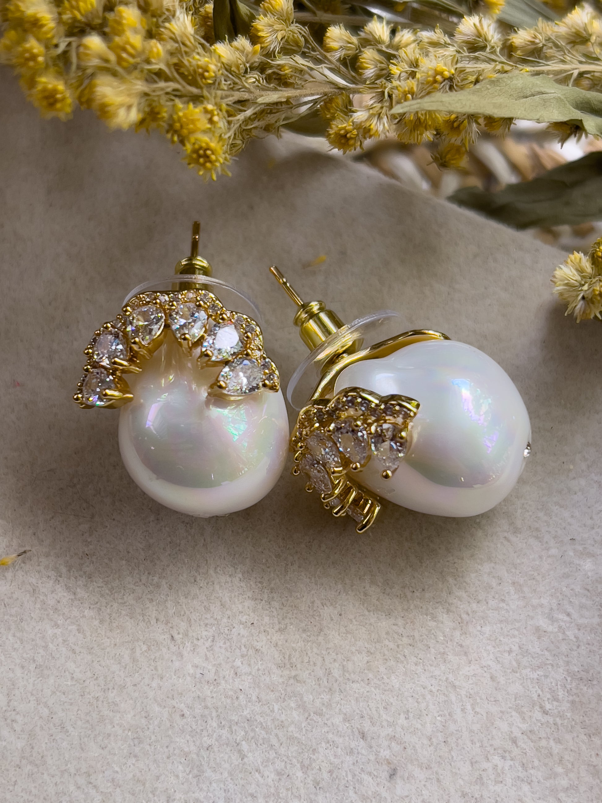 Perla shell , arete de oro laminado